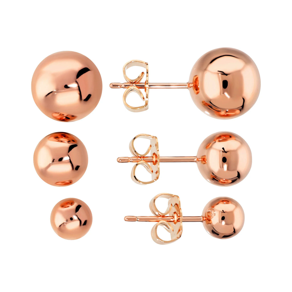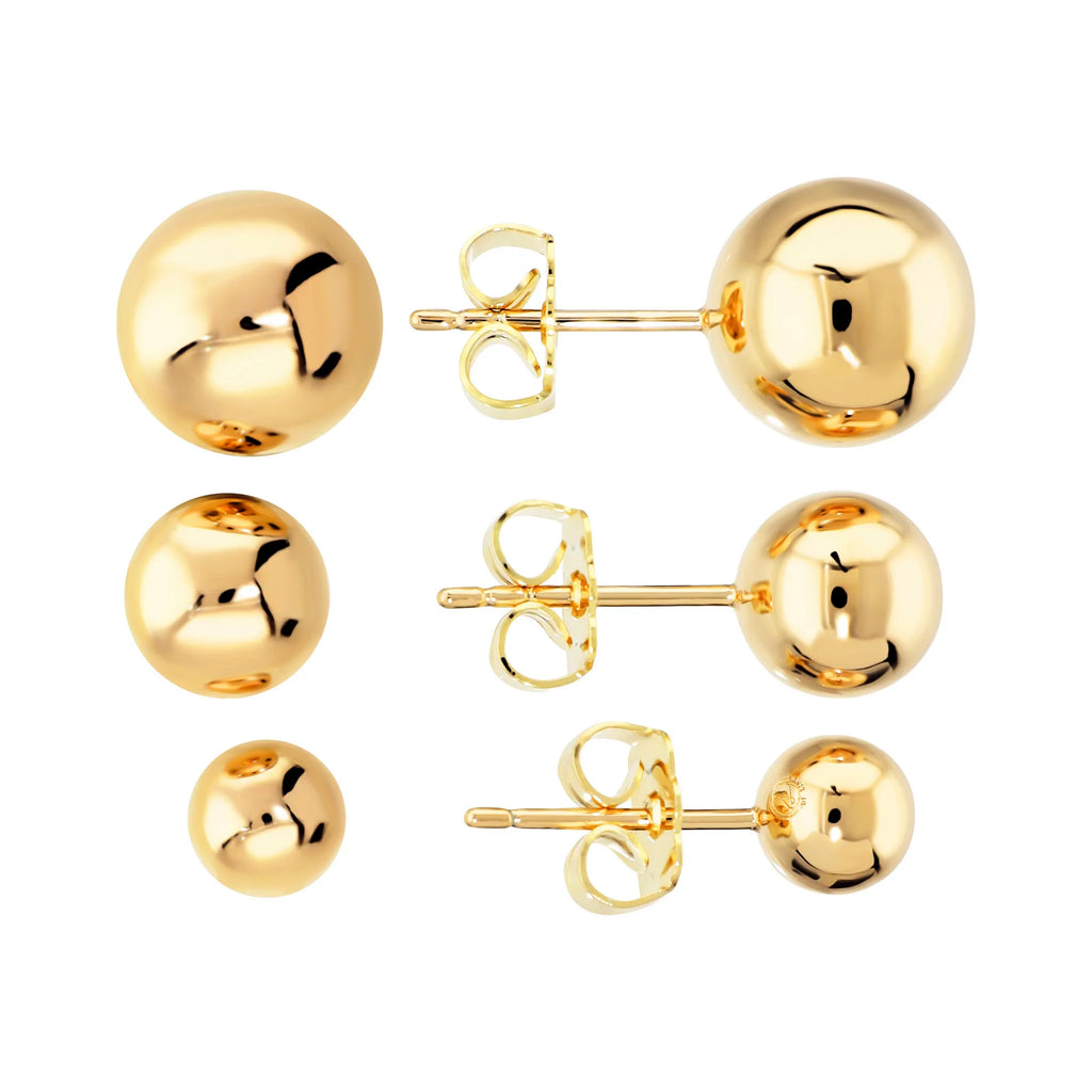 Il set comprende tre paia di orecchini con palline lucide in tre diverse dimensioni:
