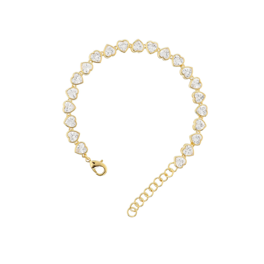 Ogni cuore riflette la luce con eleganza, trasformando il bracciale in un gioiello scenografico ma armonioso, perfetto per chi ama i dettagli luminosi e romantici.