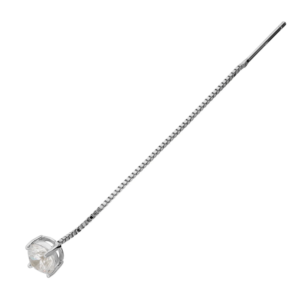 Un design raffinato con uno zircone grande e uno più piccolo che crea un elegante gioco di luce. Si infilano da una parte e si fanno scorrere fino in fondo, lasciando uno zircone centrale sul lobo e la catenella pendente dietro l’orecchio per un effetto sofisticato e di tendenza.