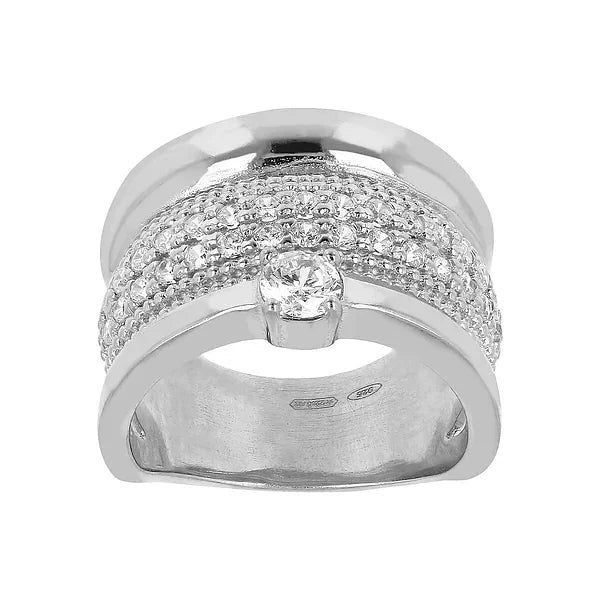 Tre fasce distinte: Una fascia bold per un tocco di forza e carattere. Una parte centrale ricoperta di zirconi, per un’ulteriore brillantezza che illumina il dito. Una fascia con pietra solitaria centrale, per aggiungere un dettaglio elegante e affascinante.