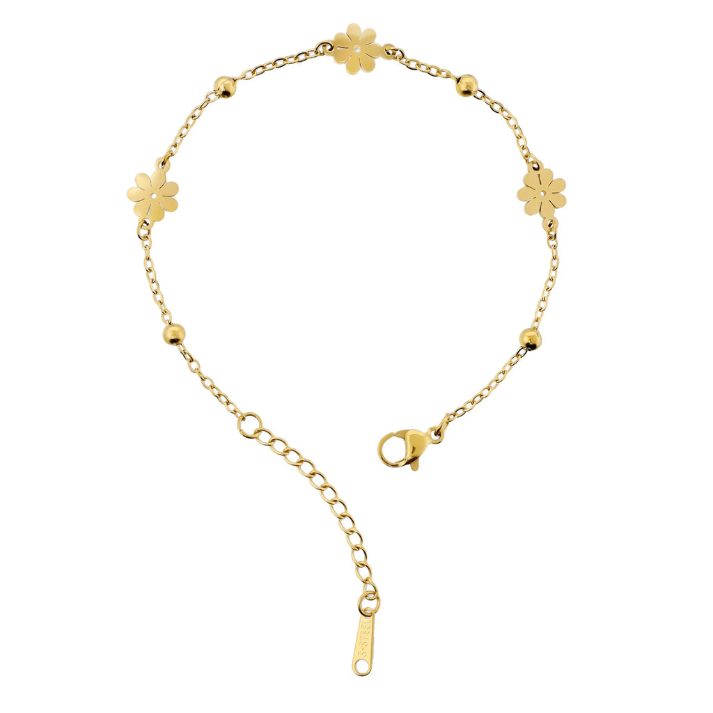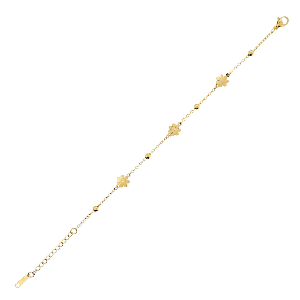 Delicato e luminoso, questo bracciale è impreziosito da piccoli fiori distribuiti lungo la catena, per un effetto romantico e femminile.