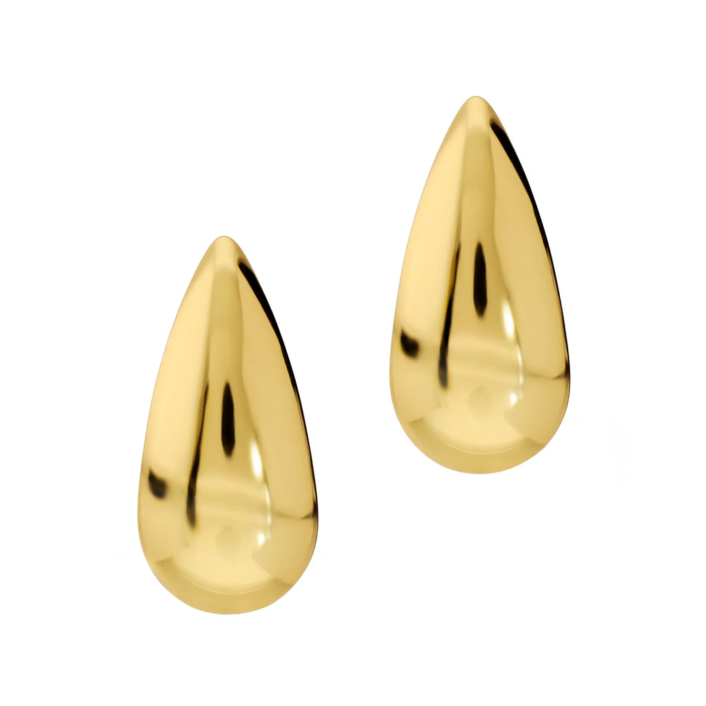 Linee morbide e luminose per questi orecchini a forma di goccia, dal design essenziale ma d’impatto.