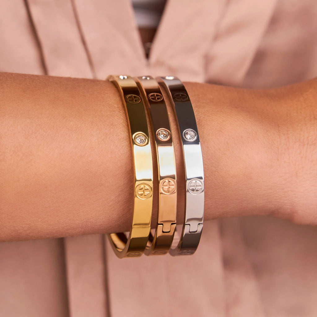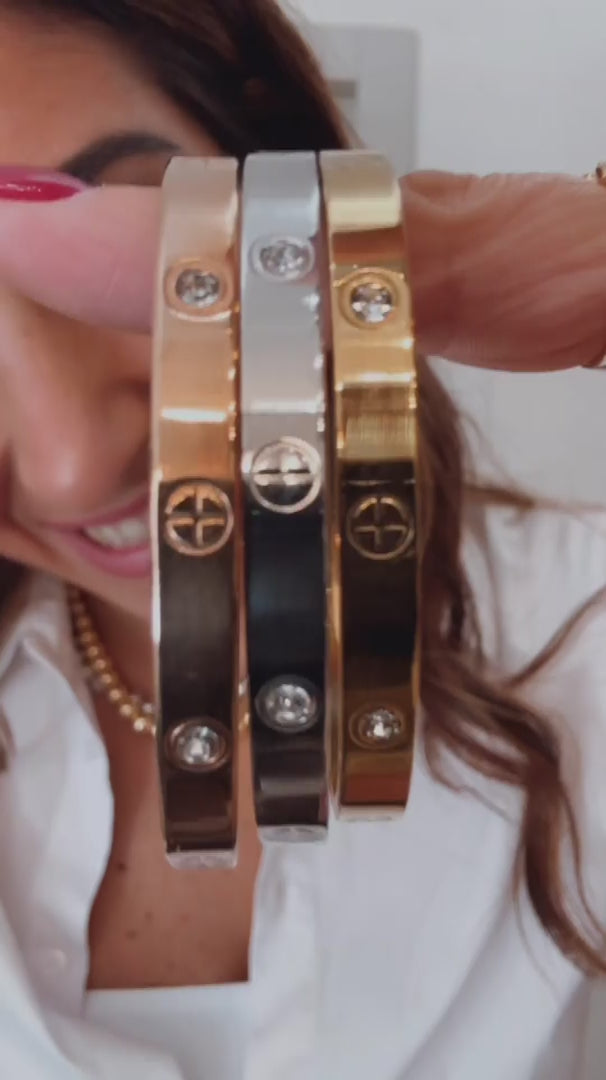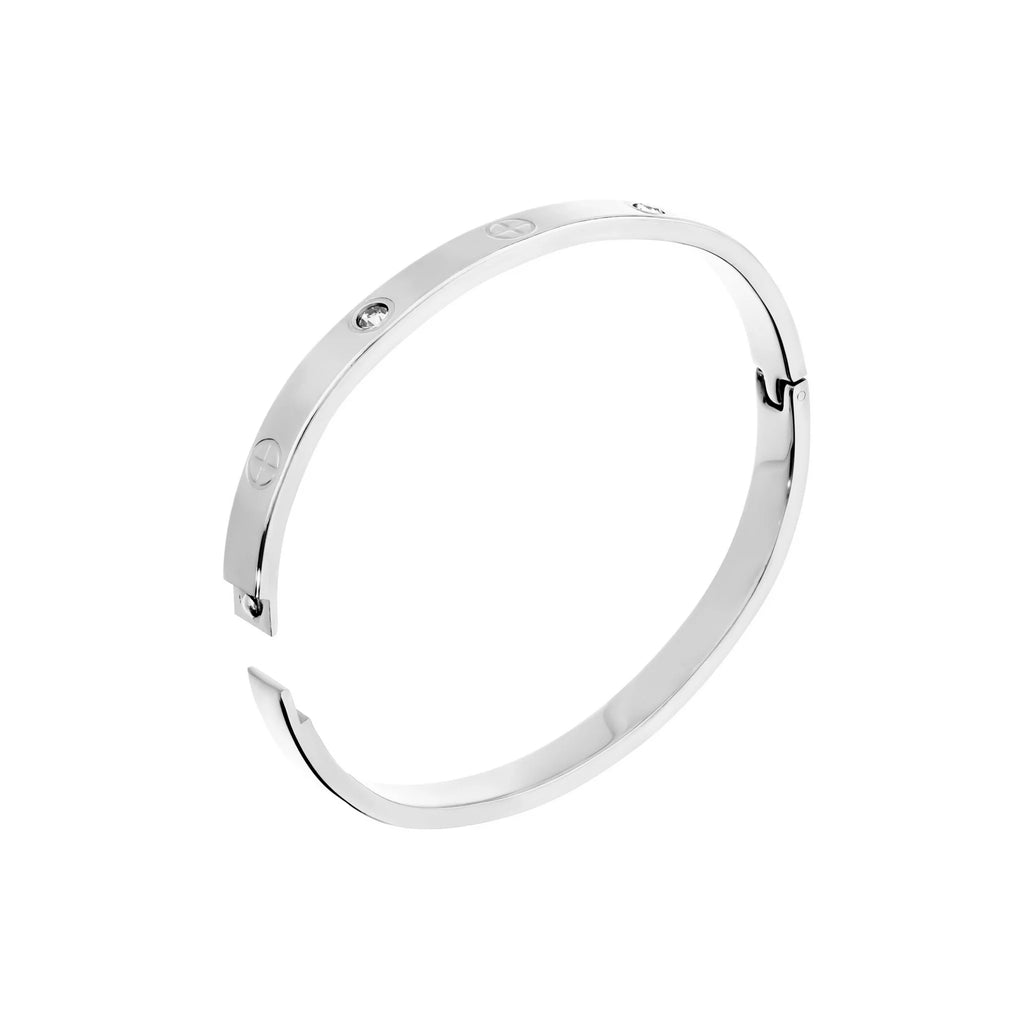 Iconico, elegante e senza tempo — il Bracciale Rigido con Zirconi è un must-have che aggiunge un tocco di luce a ogni look.