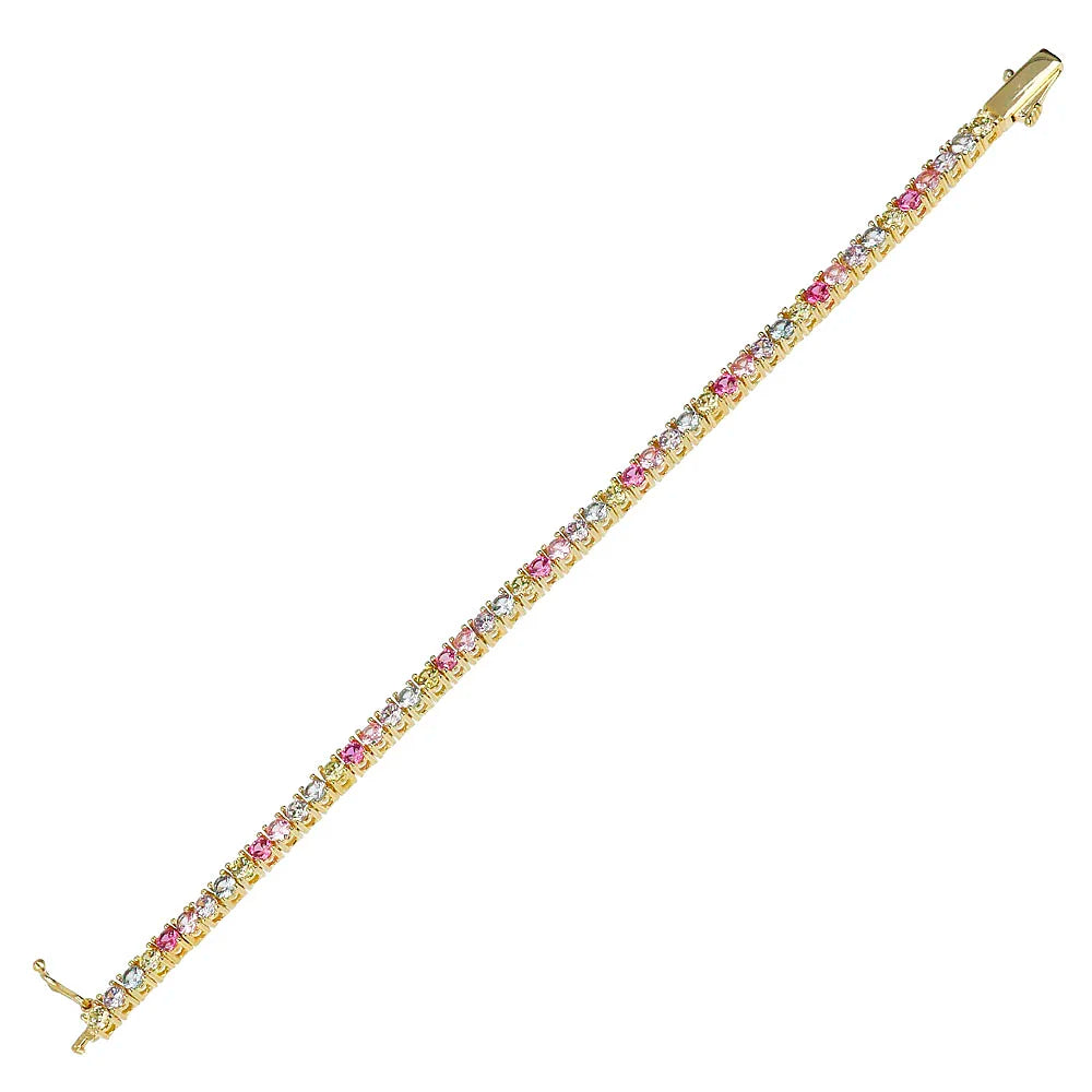 Bracciale Tennis Arcobaleno Colori Pastello–Un gioiello dal design raffinato ed elegante, il Bracciale Tennis Rosa è perfetto per chi ama un look luminoso e sofisticato.