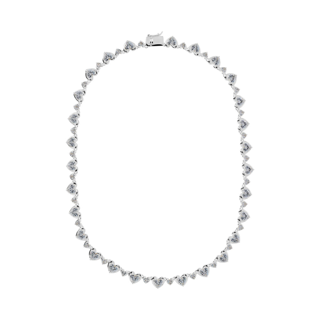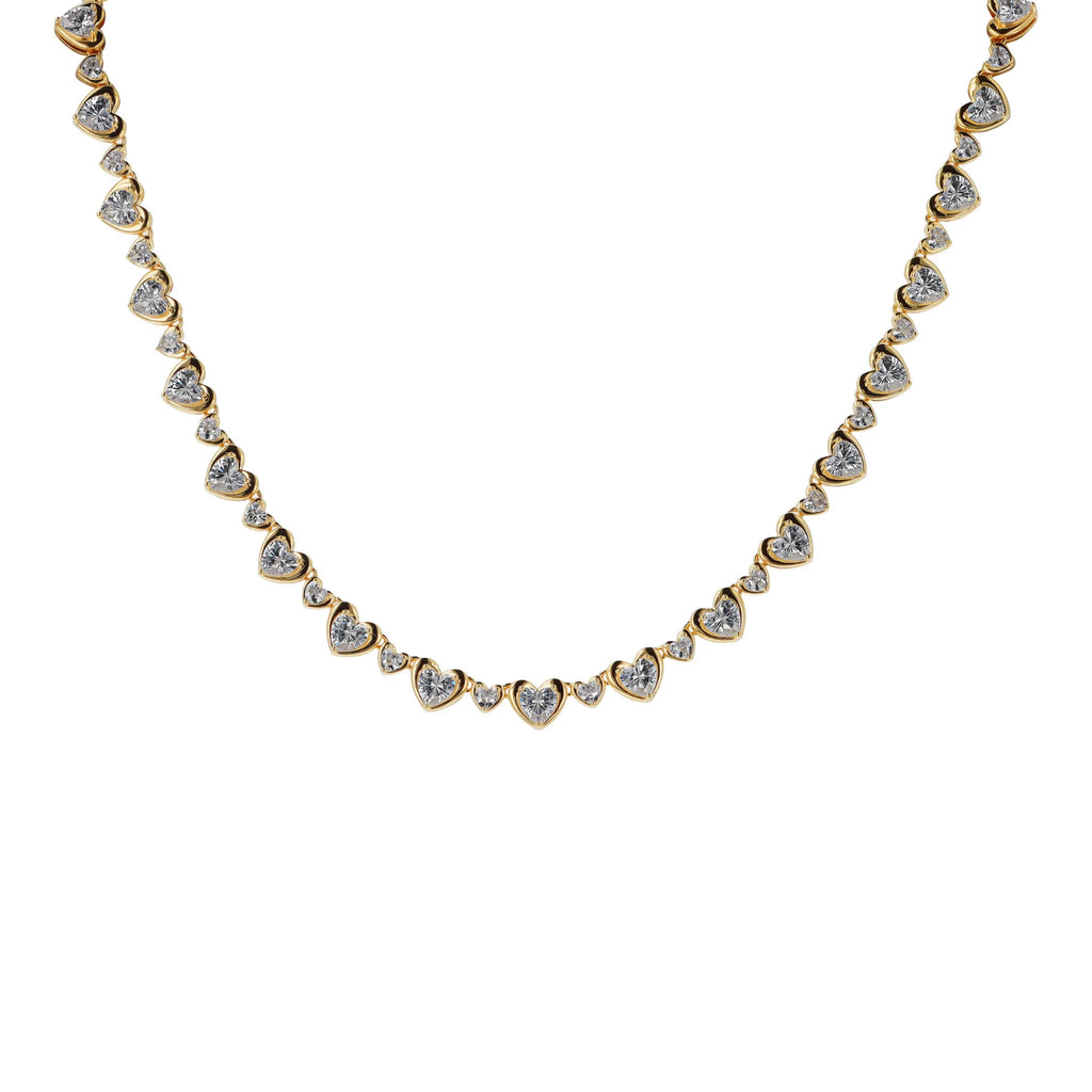 Una collana tennis raffinata e senza tempo, decorata con cuori in CZ bianchi che donano una luce pura e sofisticata. Disponibile con placcatura in oro giallo o oro bianco, è il gioiello perfetto per chi ama l’eleganza essenziale ma luminosa.