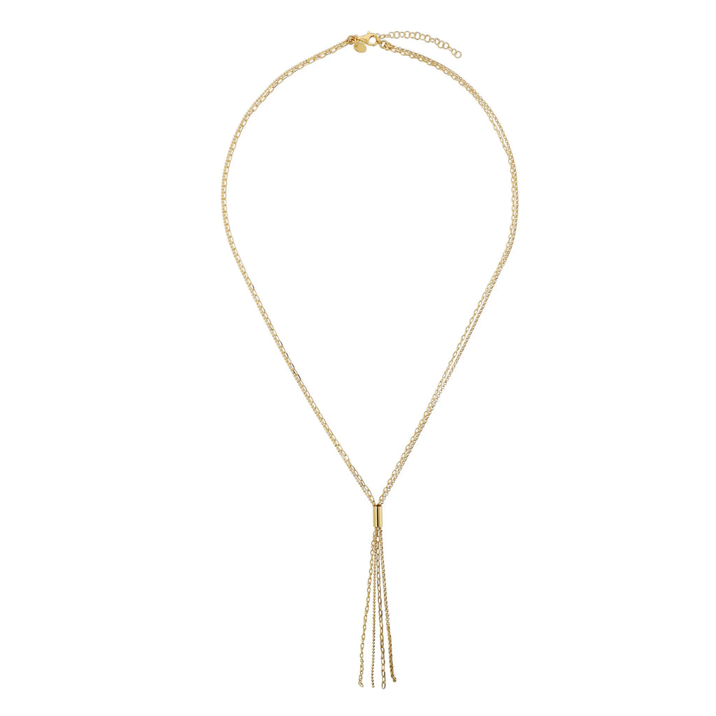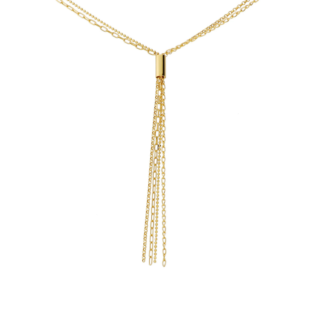 Golden Cascade è una collana lunga con centrale a cascata di catene, un design scenografico che dona movimento, luce e un tocco irresistibilmente sexy al look.