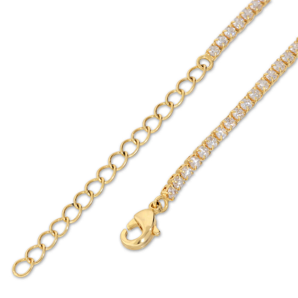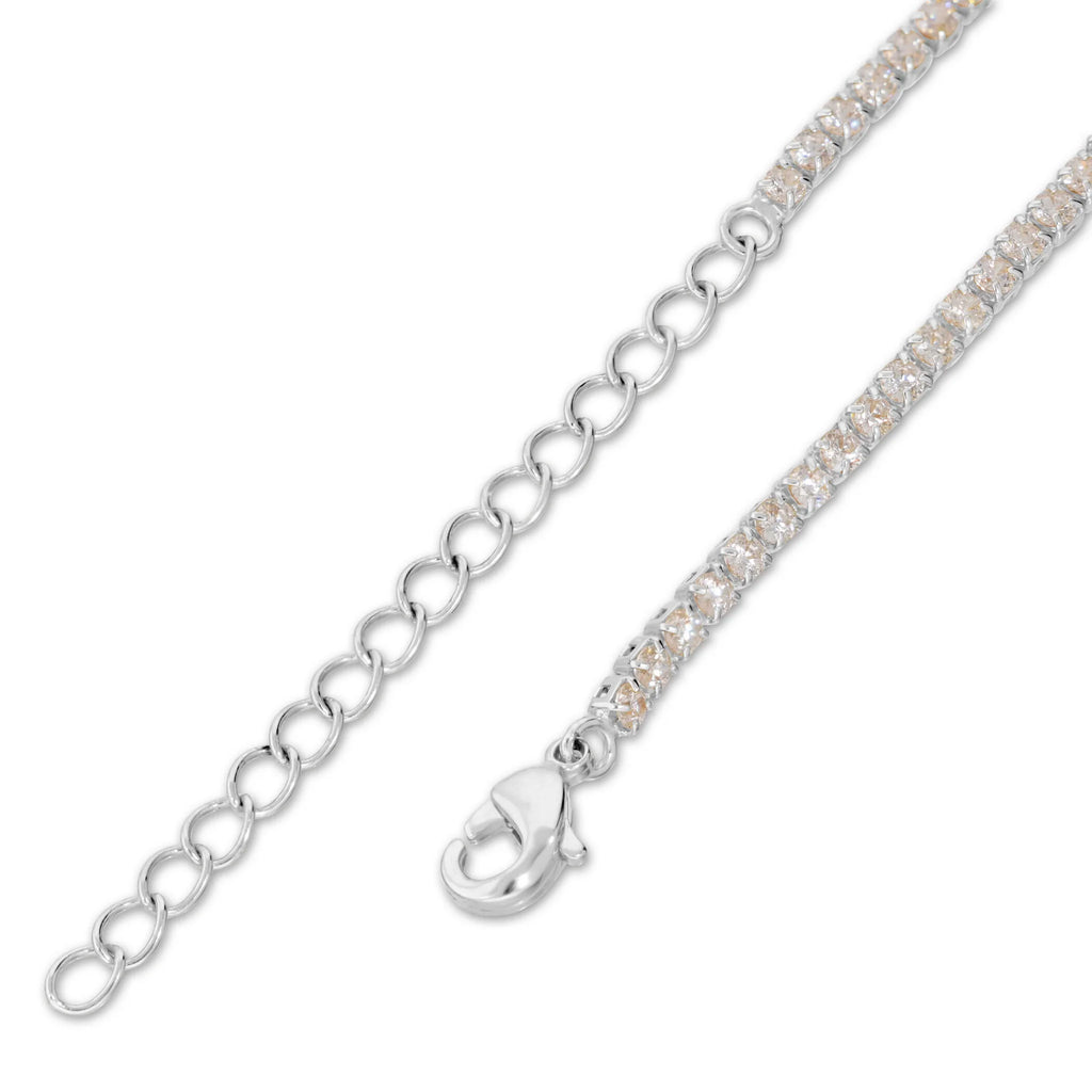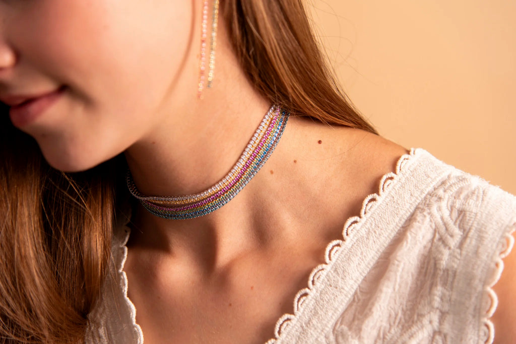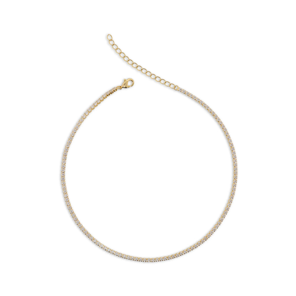 Questa collana mini tennis, dal design sottile e raffinato, si porta aderente al collo per un effetto choker elegante e luminoso.