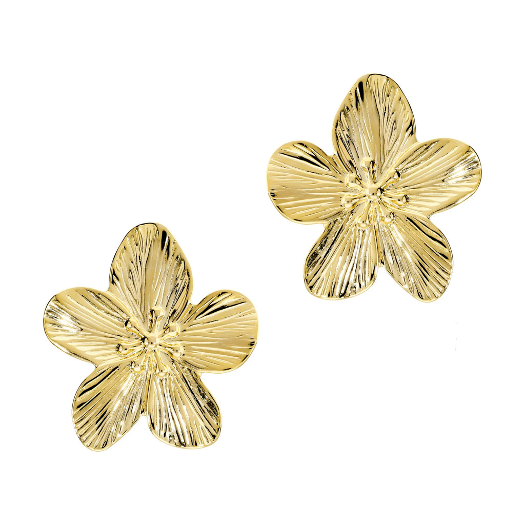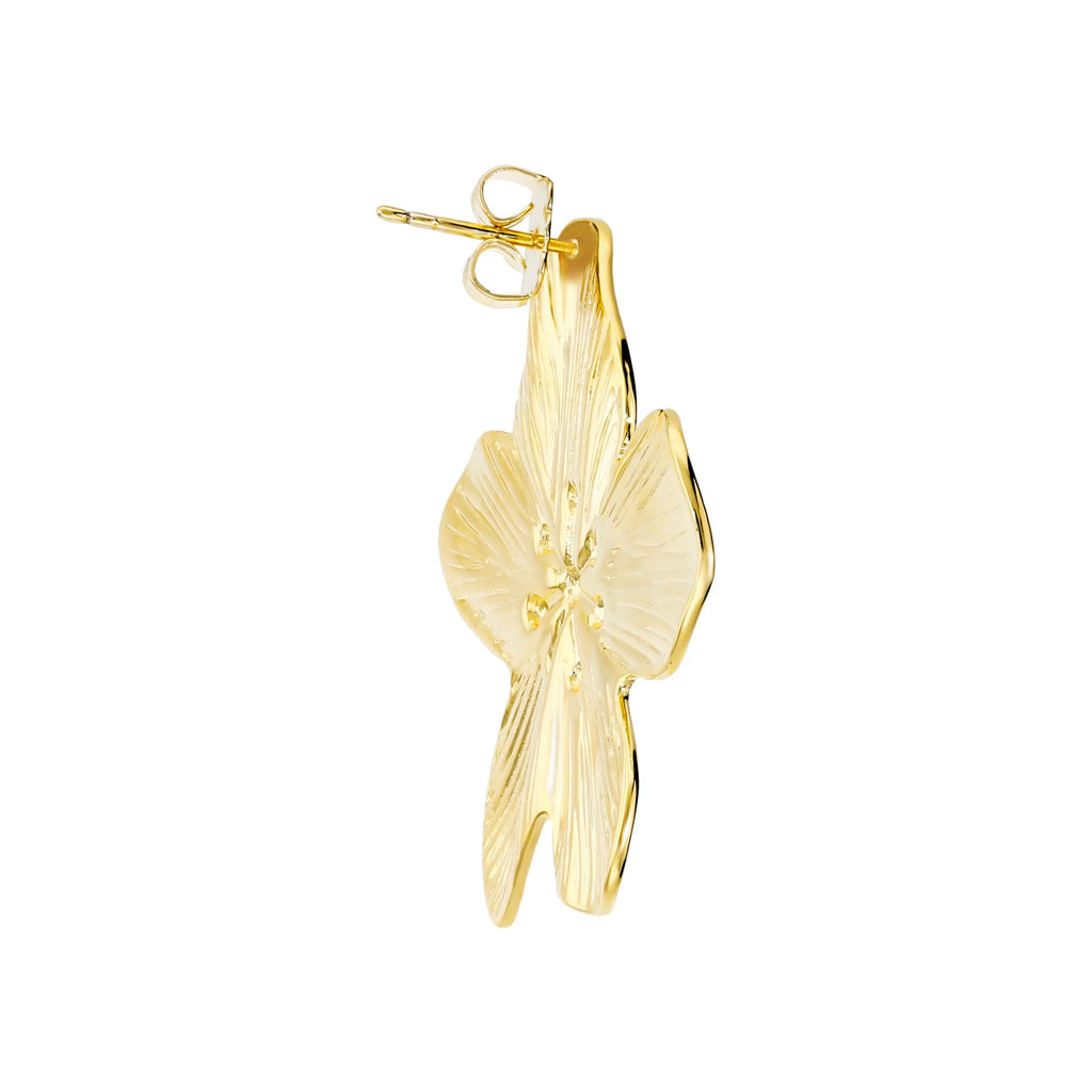 Realizzati su base in bronzo bagnato in oro giallo 18 kt, raffigurano un grande fiore dorato, dalle forme morbide e tridimensionali, che illumina il viso con eleganza e personalità.