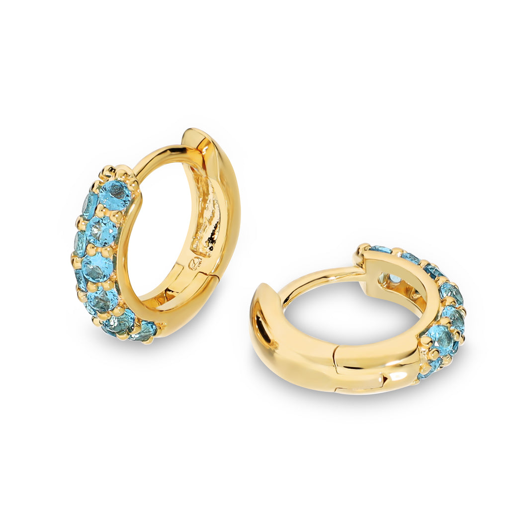 Il design a cerchietto piccolo (hoop) è impreziosito da una sequenza di pietrine colorate nei toni del rosa e dell’azzurro, che donano luce e un tocco fresco e femminile. Un modello facile da indossare ogni giorno, perfetto sia da solo sia abbinato ad altri orecchini per creare un look moderno.