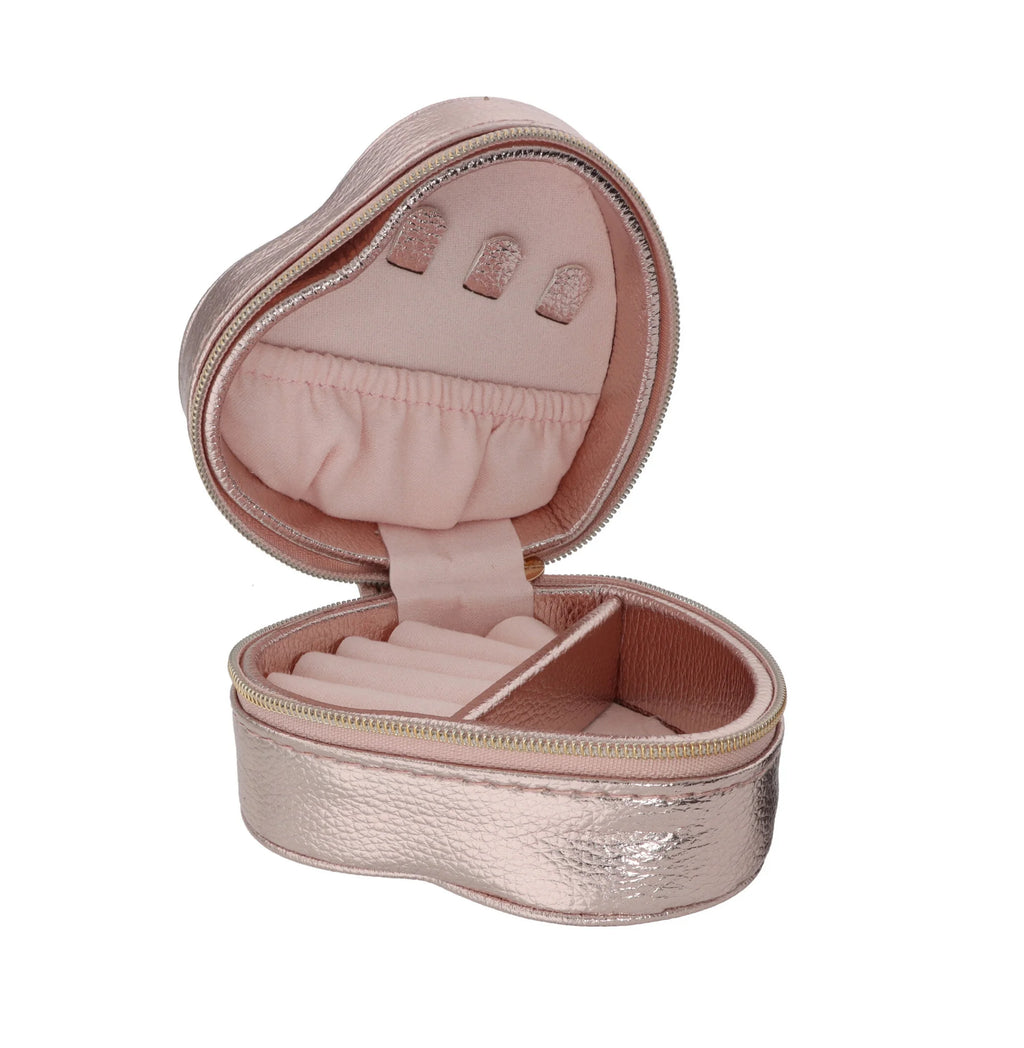 Elegante, compatto e irresistibilmente romantico. Questo porta gioie rosa metallico con zip è l’accessorio ideale da tenere sul comodino per custodire i tuoi gioielli più preziosi.